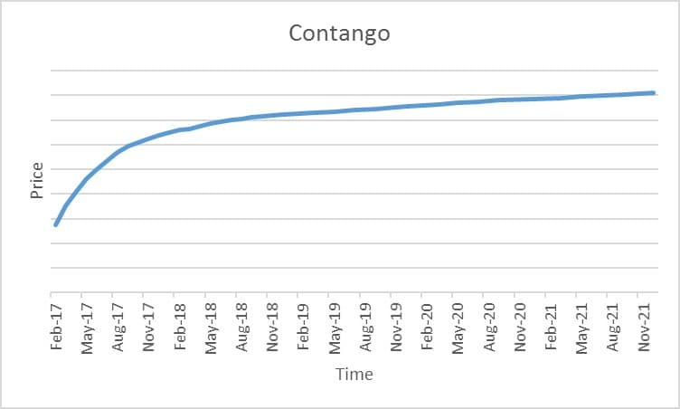 실물인도되는 선물계약의 경우에는 콘탱고 상태일 경우가 많습니다. 그 이유는 보관 비용, 보유비용으로도 알려진 금융 비용, 그리고 보험료 등 펀더멘털 요인들 때문입니다.
